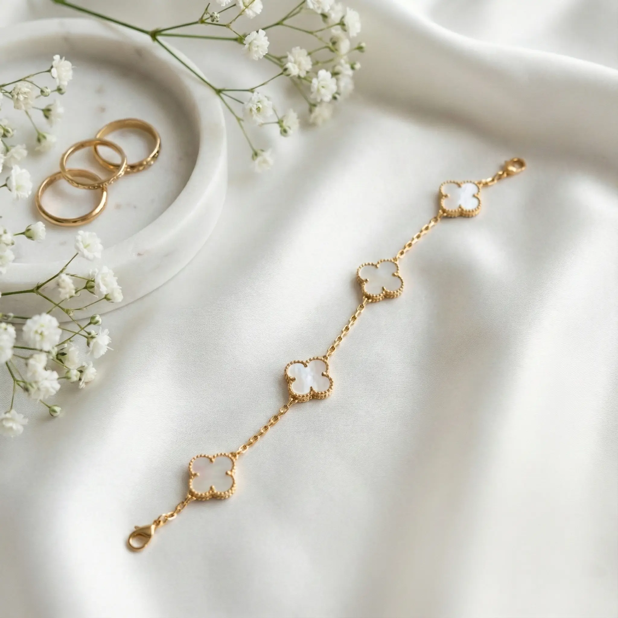 Anti-tarnish clover flower Bracelet (White)