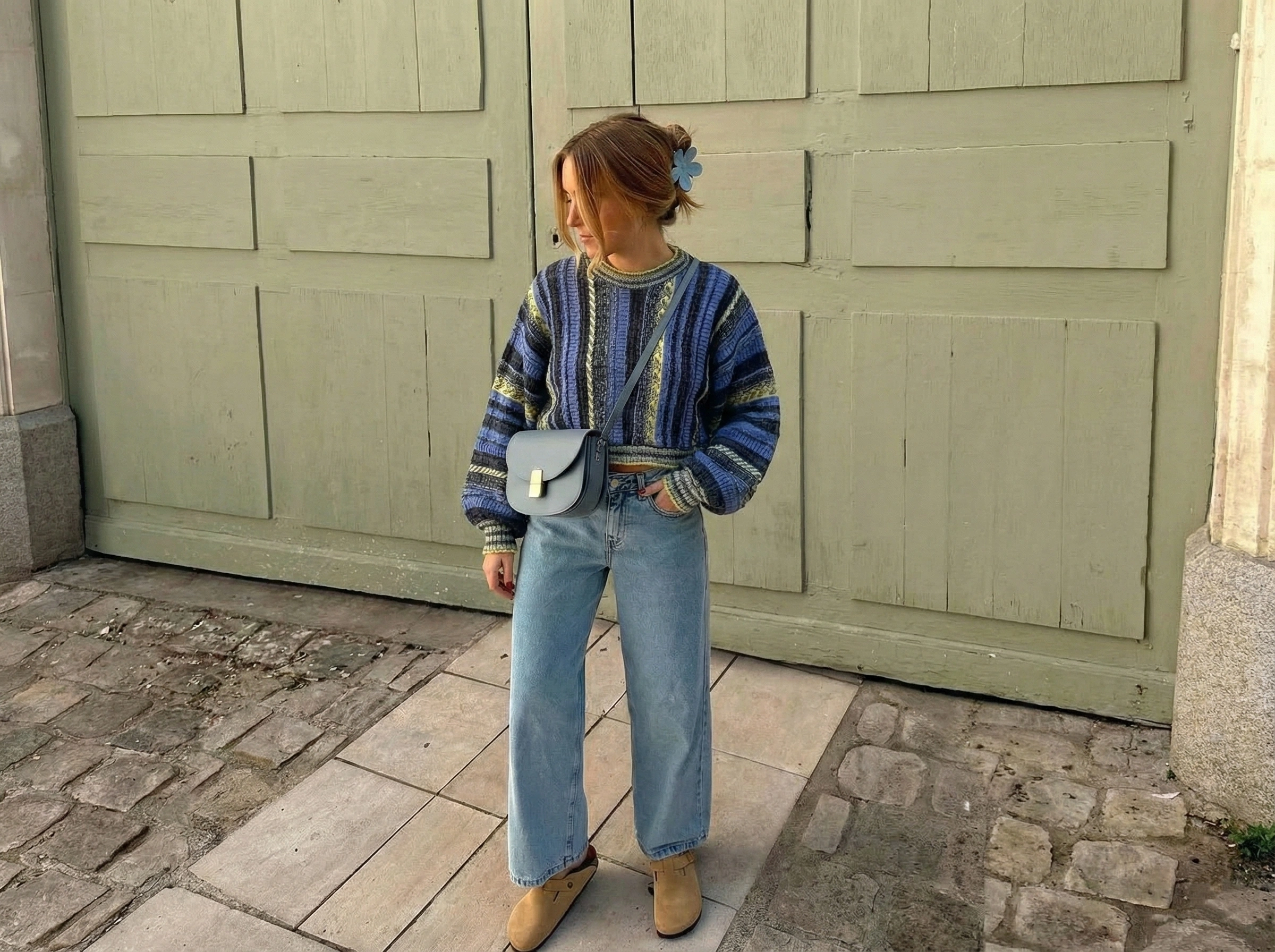 Be the first to review “Blue Textured Stripe Knit Crop Sweater”