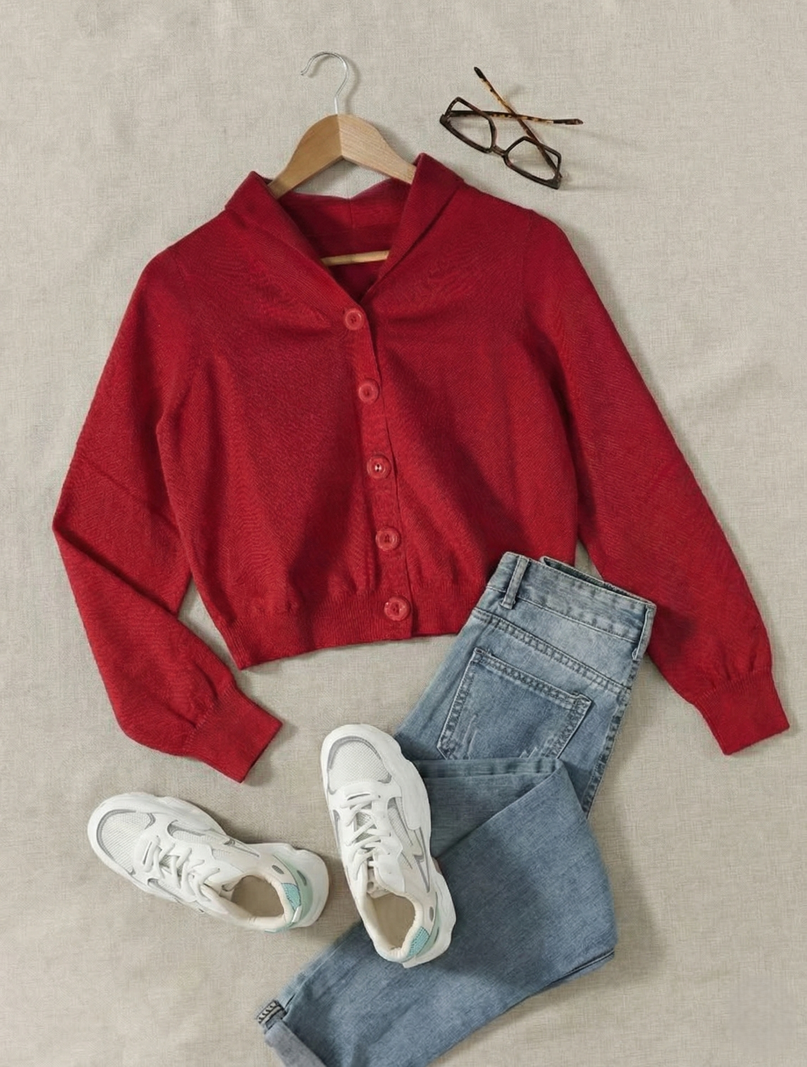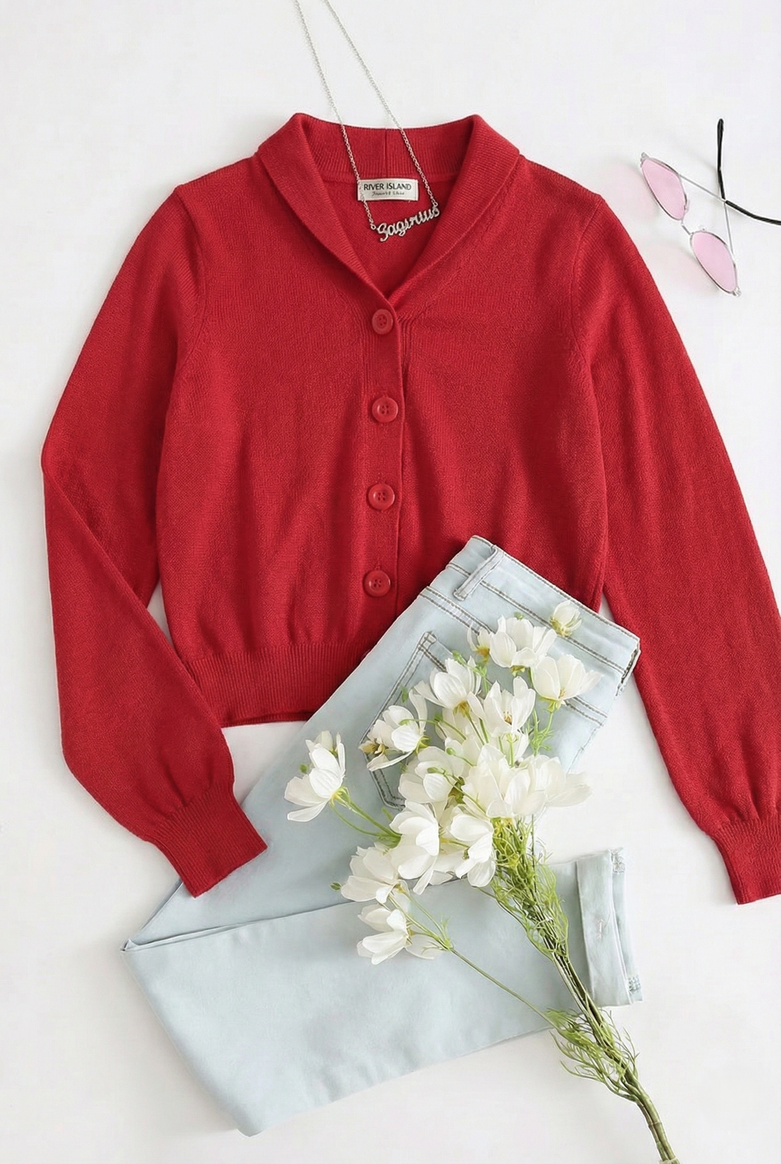Be the first to review “Bright Red Button-Down Knit Cardigan”