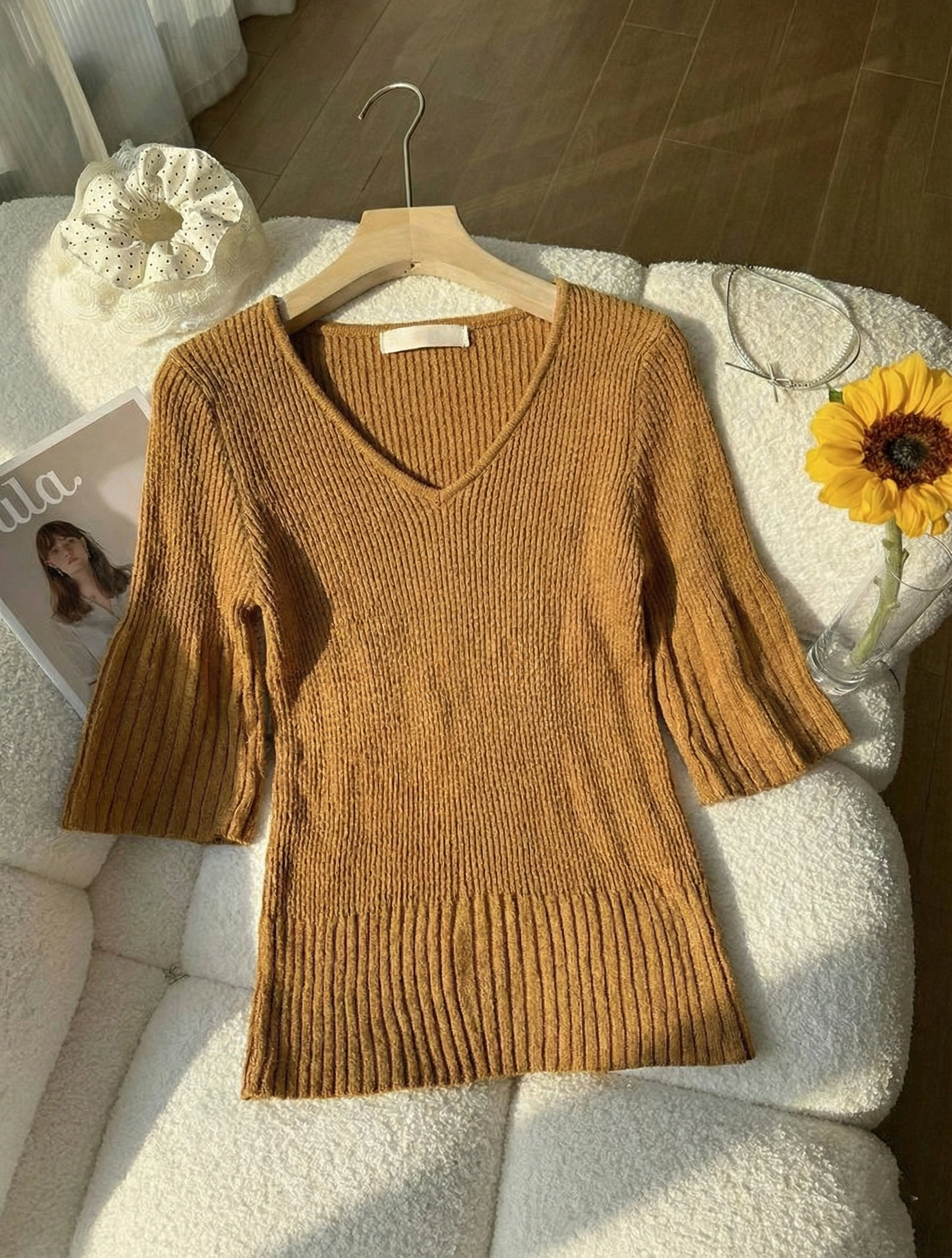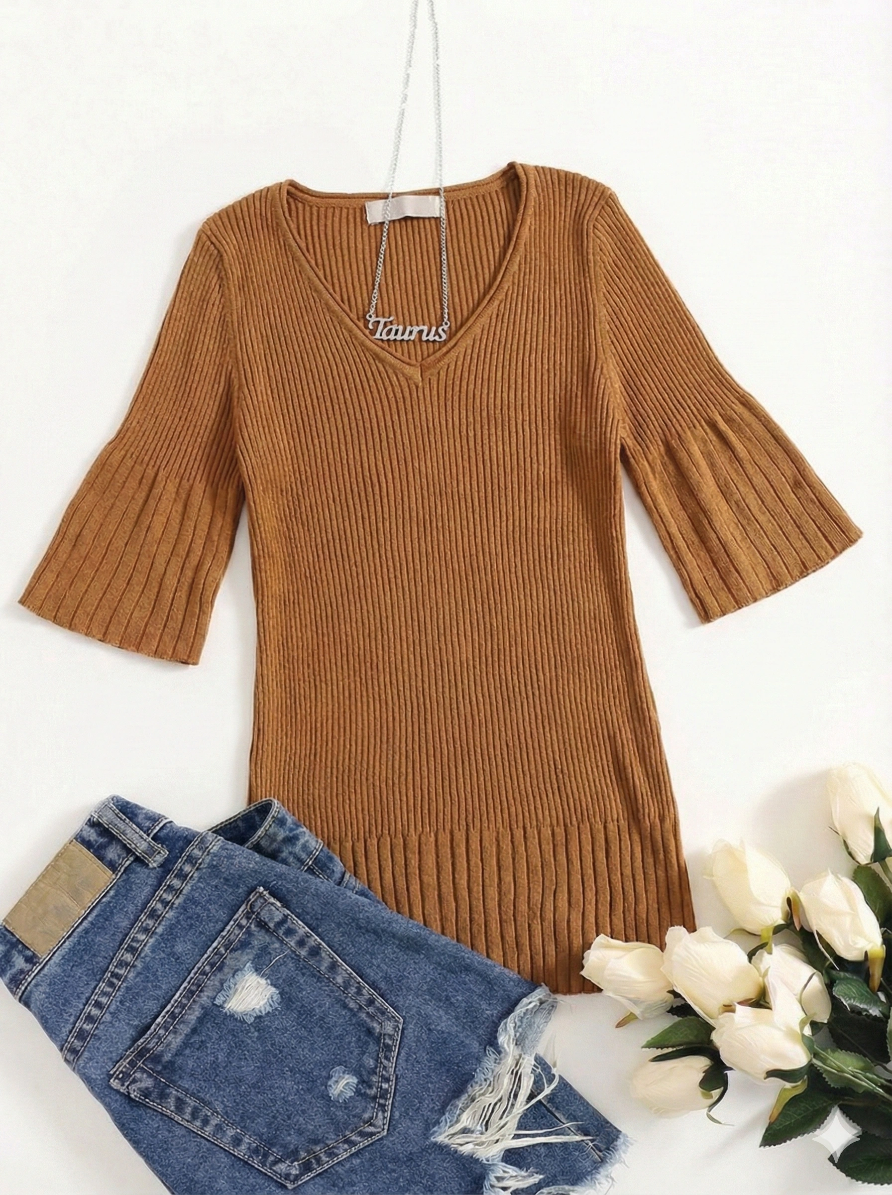 Be the first to review “Brown Ribbed V-Neck Top”