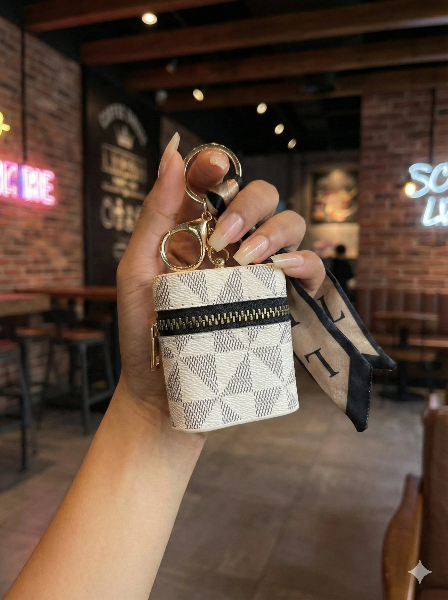 Ivory Check Mini Zip Key PouchIvory Check Mini Zip Key Pouch