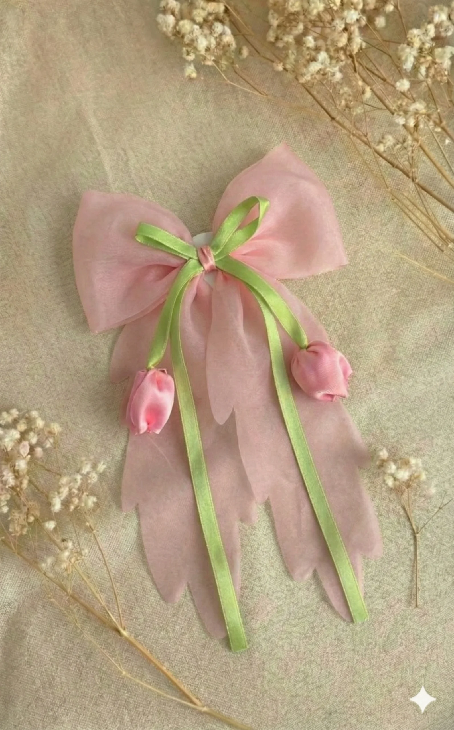 Pastel Floral Organza Bow Clip (Pink)Availability: 2 in stock