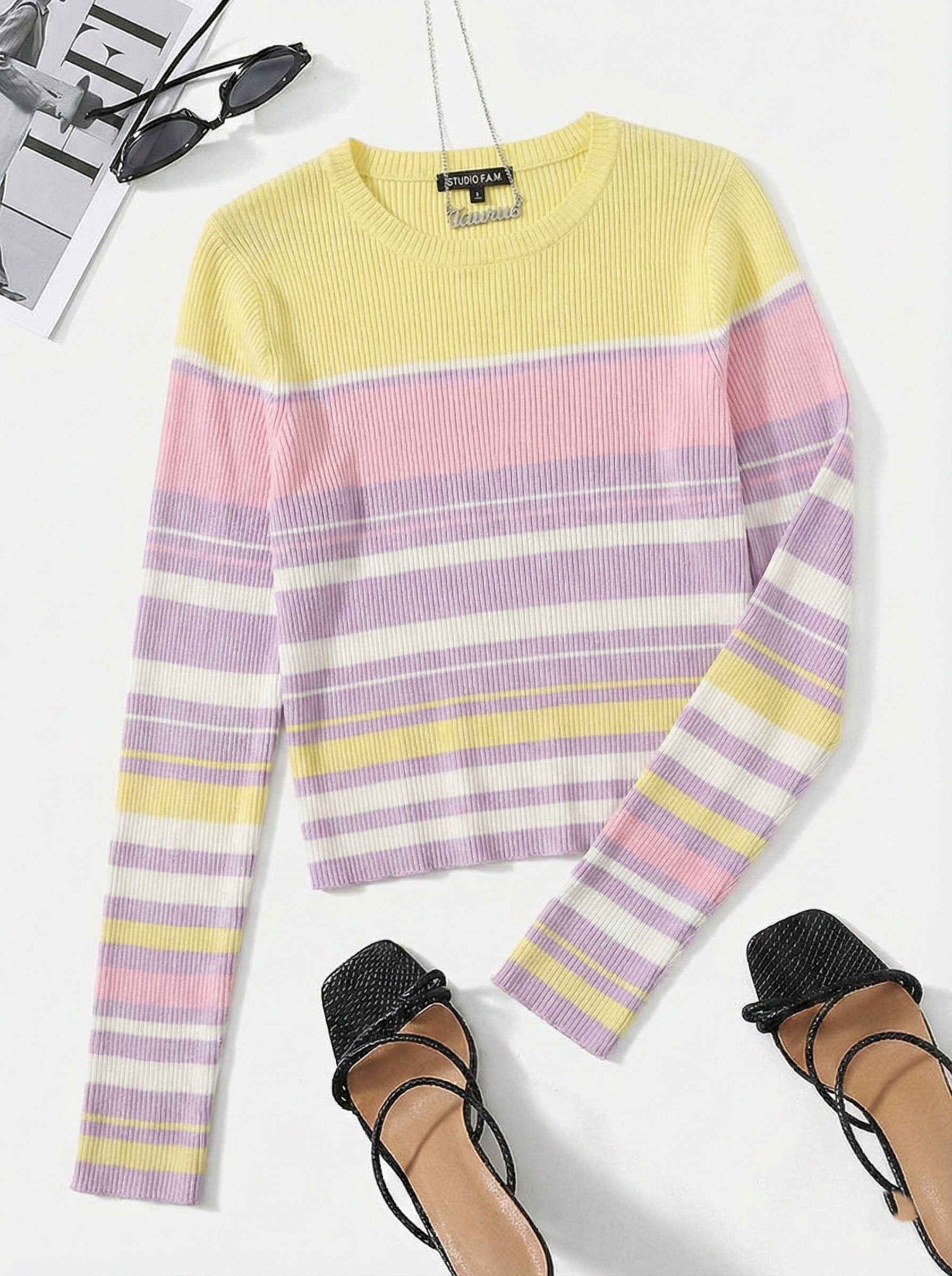 Be the first to review “Pastel Striped Ribbed Knit Top”