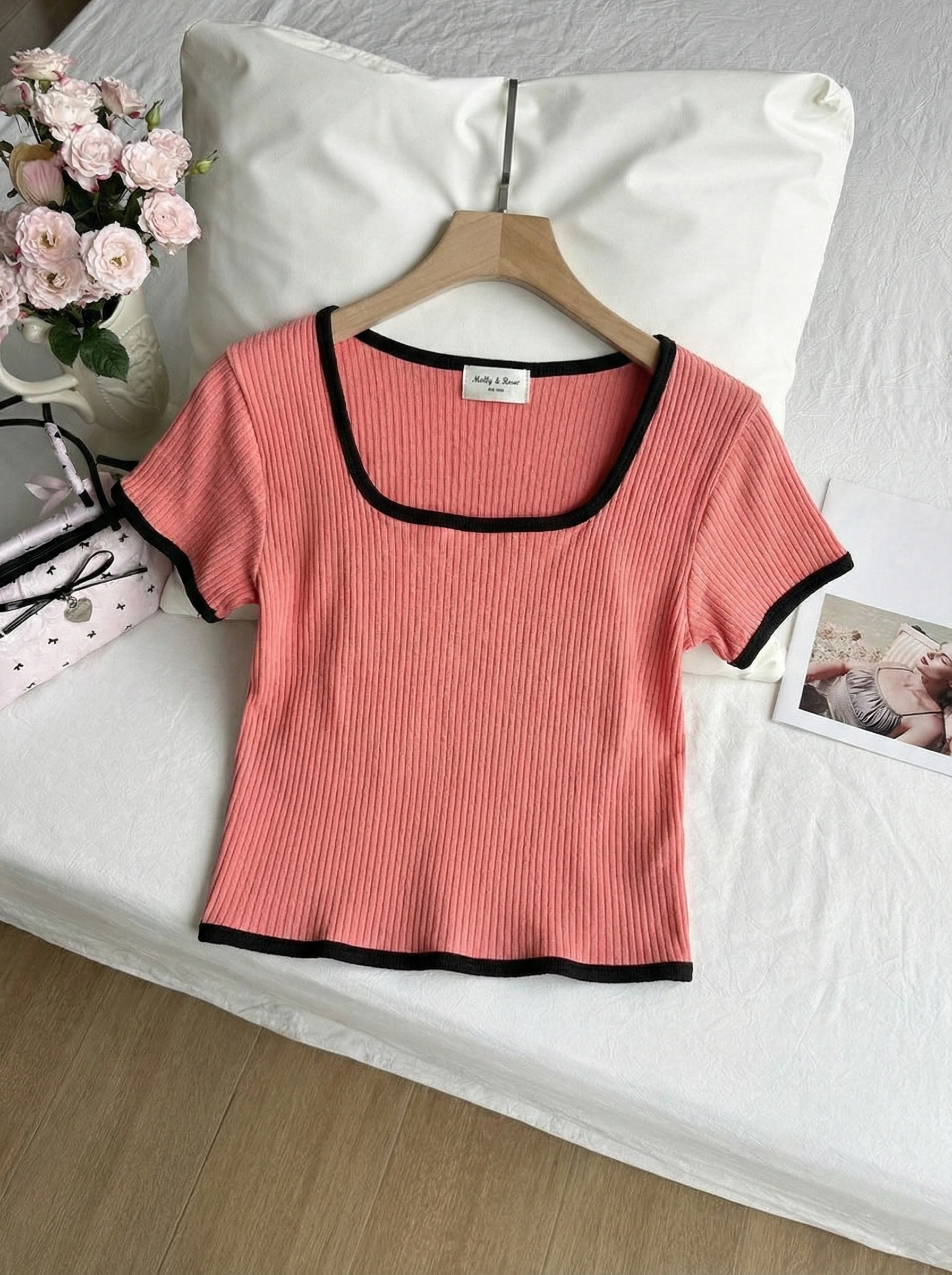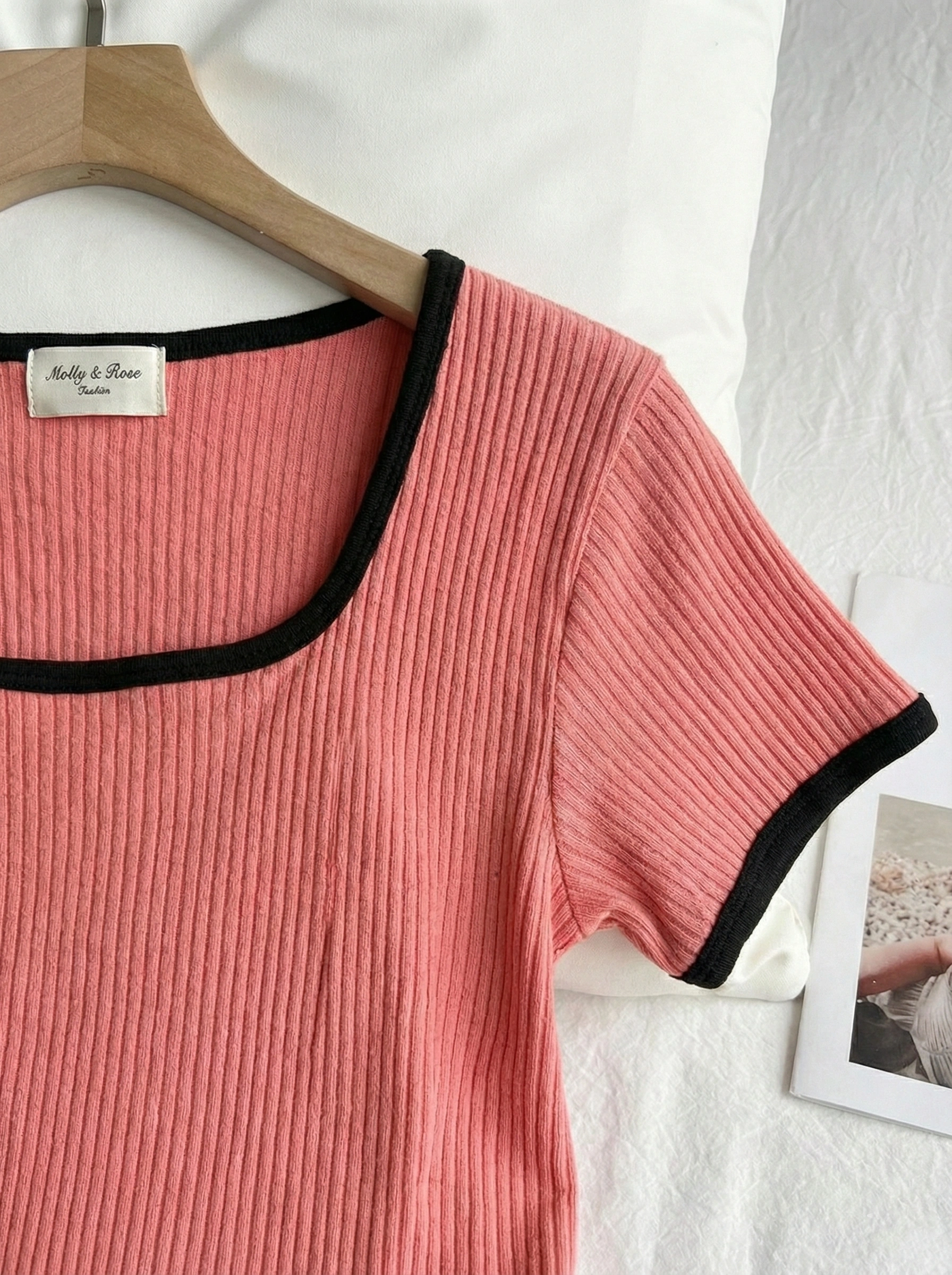 Be the first to review “Pink Ribbed Contrast Neck Top”